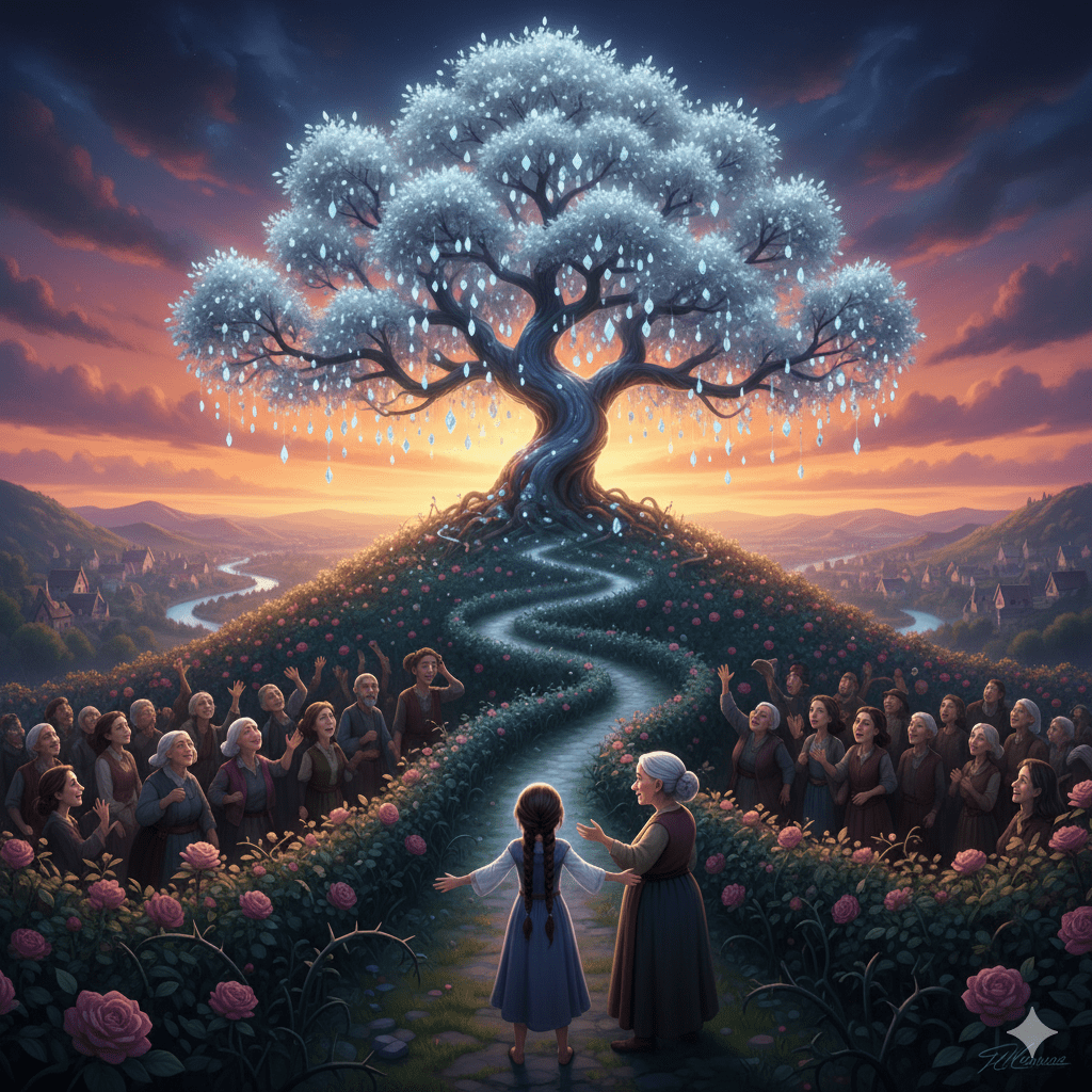 Le lendemain matin, avec le soutien de sa grand-mère, Éloïse se présenta devant le maire. Elle expliqua son don et la vision qu’elle avait eue du Saule aux Éclats de Lune. Au début, les villageois furent sceptiques, mais l’espoir était si mince qu’ils acceptèrent de la suivre.